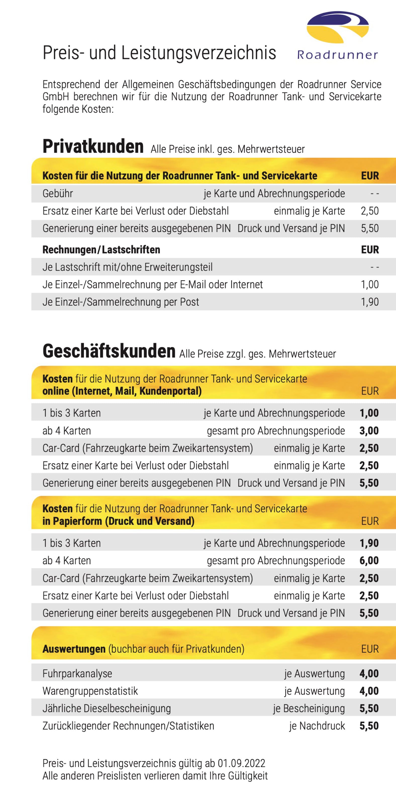 - RoadRunner-Karte Deutschlandweit in einem engmaschigen Tankstellen-Netz nutzbar