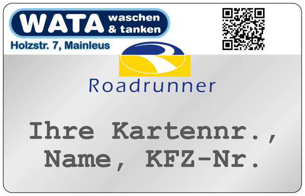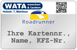 Sie erhalten nur eine WATA-Roadrunner-Karte(n) über die Links auf dieser Seite und bei Angabe von WATA123 im Bemerkungsfeld auf der Beantragungsseite. Direkt bei roadrunner oder ohne Angabe bei Bemerkung werden Ihre WATA-Konditionen ungültig.